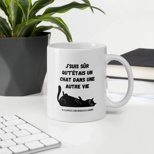 Mug "J’suis sûr qu't’étais un chat dans une autre vie, vu ta capacité à rien branler d'la journée"