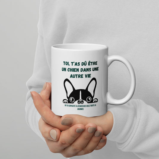Mug "Toi, t'as dû être un chien dans une autre vie. Vu ta capacité à lécher des culs toute la journée".