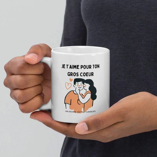Mug "Je t'aime pour ton gros coeur. Non j'déconne, c'est pour ta grosse b*te".