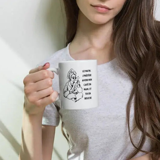 Mug "Le matin, j'préfère avoir mon café en main, et toi en bouche"